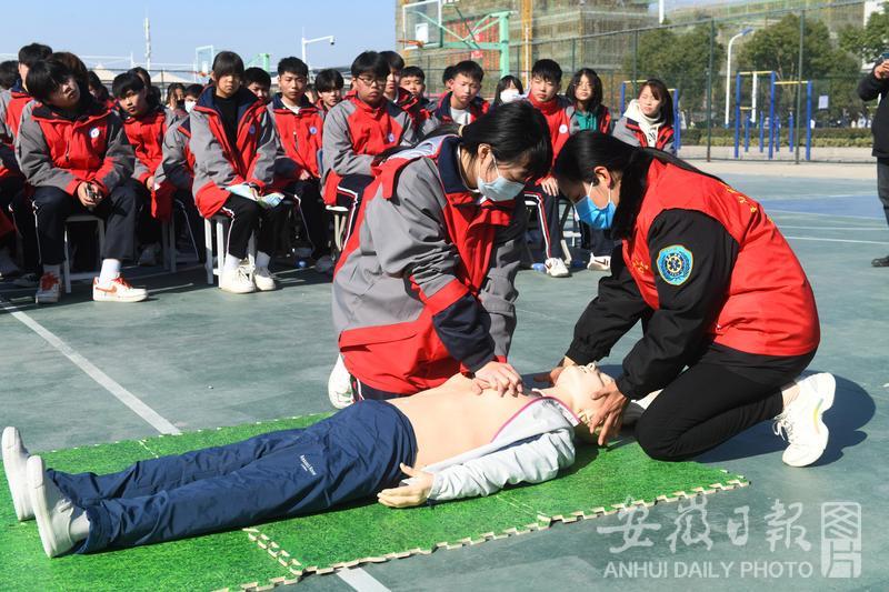 2021年12月1日,安徽省阜陽(yáng)科學(xué)技術(shù)學(xué)校的學(xué)生向120急救中心急救人員學(xué)習(xí)心肺復(fù)蘇救治方法。
